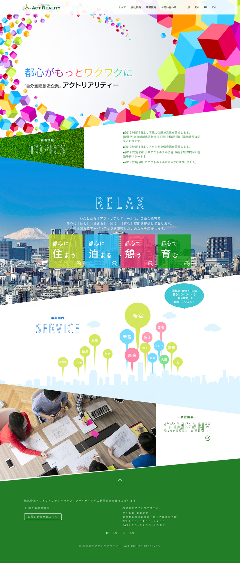 「ワクワクする事業を展開している企業」を表現したい、というご要望から、動き・ポップなカラーで躍動感あるデザインをご提案しました。