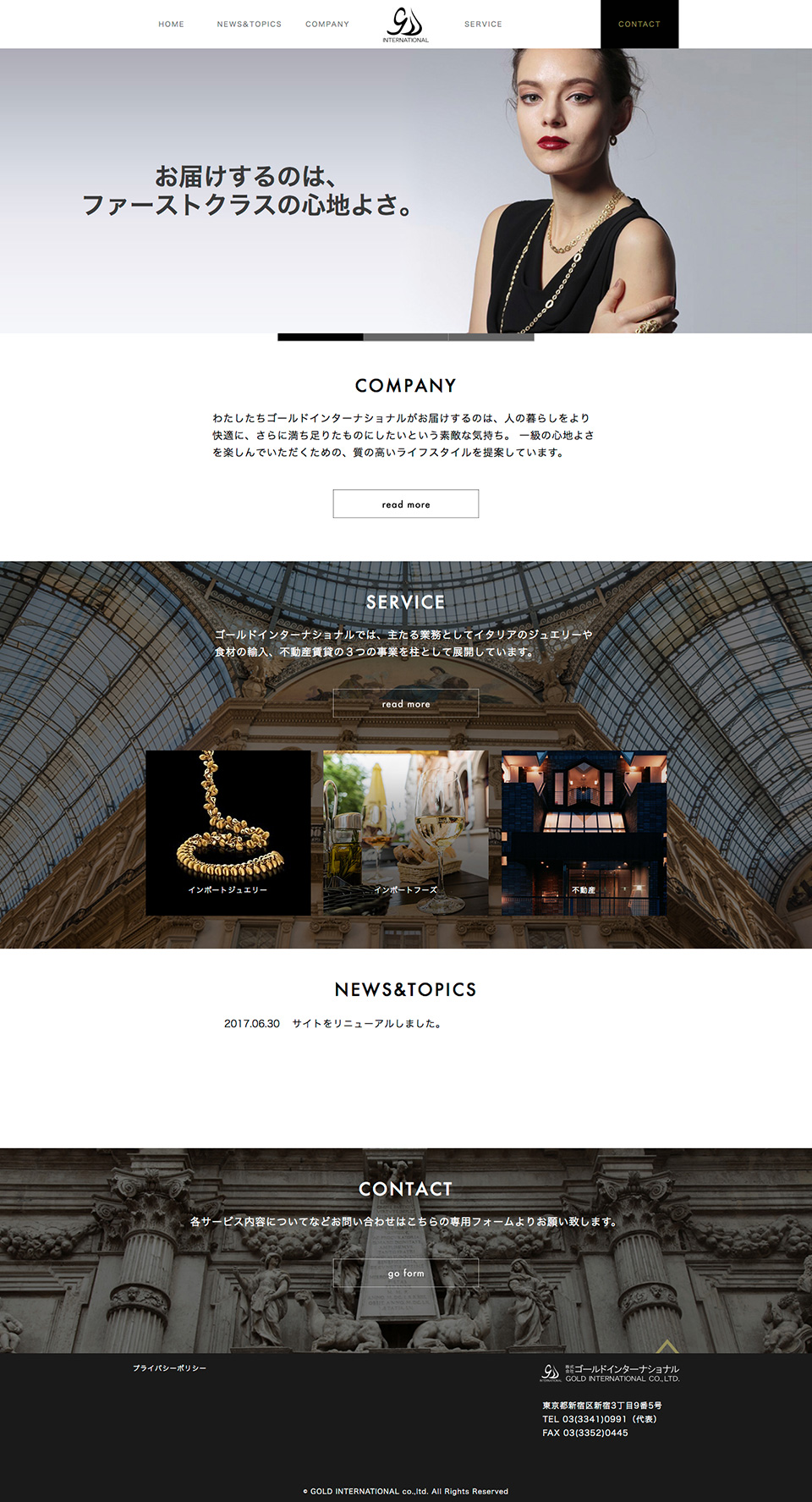 シンプルな構成ながら、事業それぞれのブランドを表現しつつ全体を調和させた、重厚感あるデザインにご提案させていただきました。