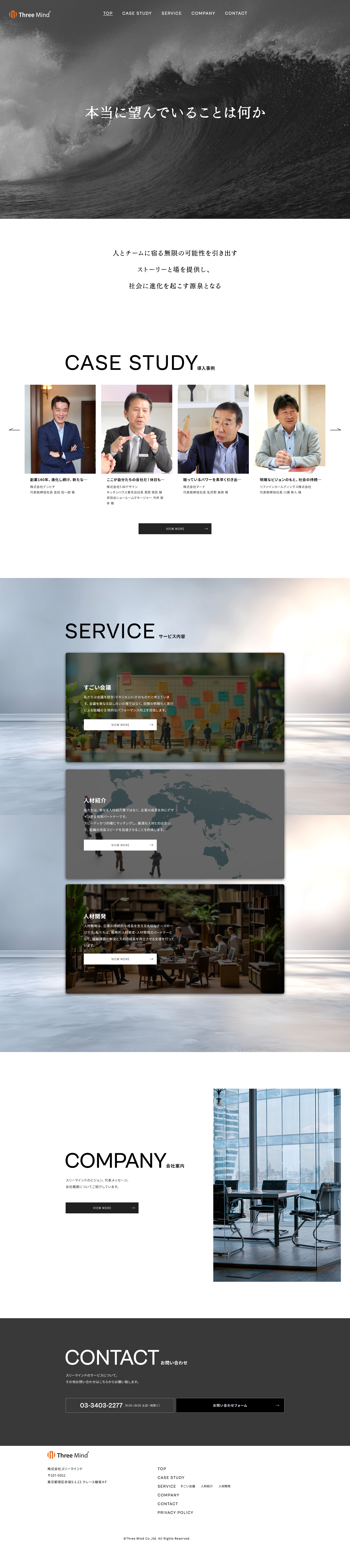 - 15年ほど前に公開されたコーポレートサイトだったため、スマホ対応をすること、また現状のサービス内容に合わせ明確に訴求し、導線を改善することがリニューアルのポイントとなりました。力強さと、丁寧な説明を心がけたデザイン・構成にしています。また、更新コンテンツはWordPressで簡単に投稿いただけるよう編集画面を制作いたしました。旧サーバーではPHPの最新versionに対応できていなかったため、新規サーバーへの移転作業を行い、セキュリティ強化にもつなげています。